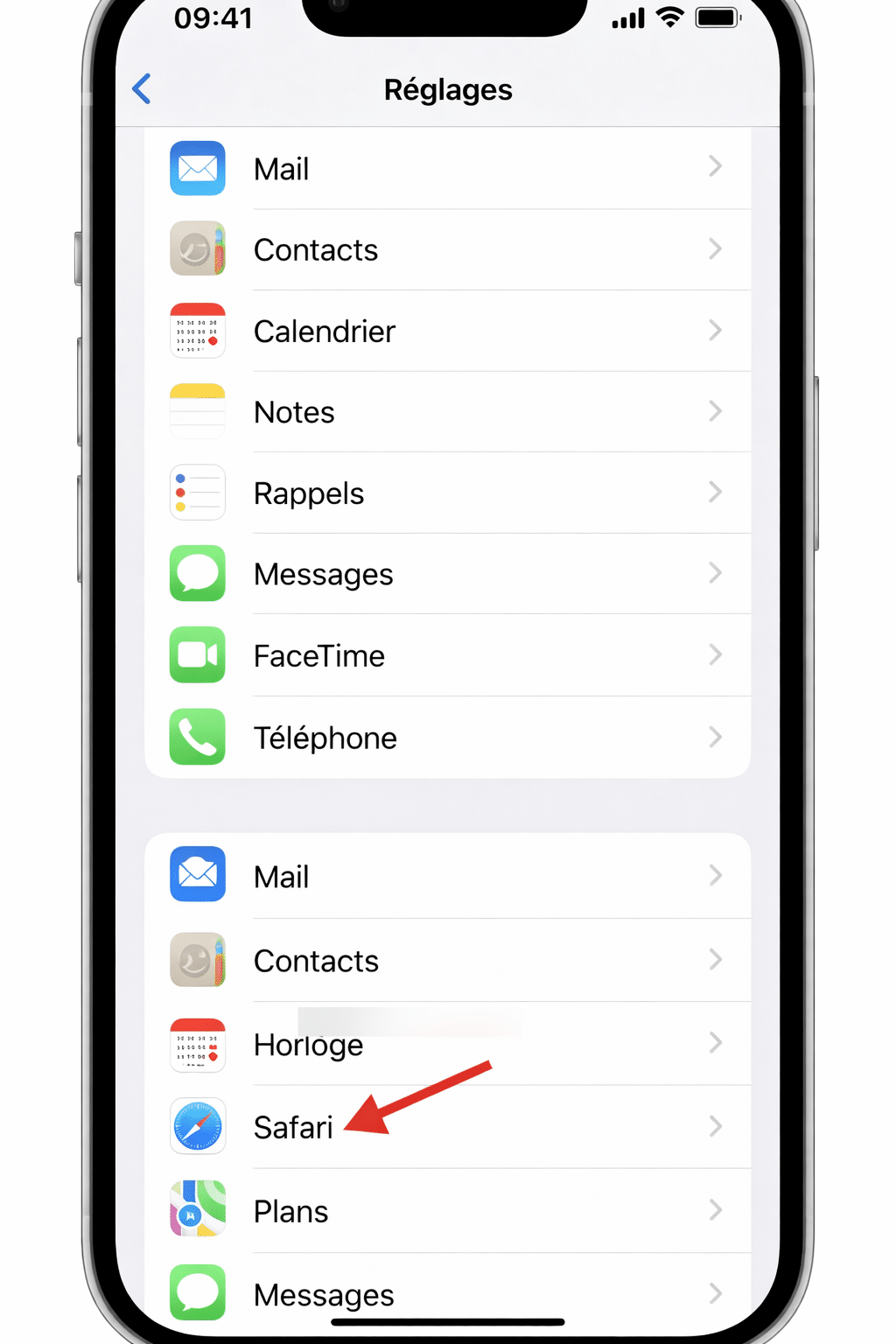 Faites défiler l’écran puis appuyez sur Safari.